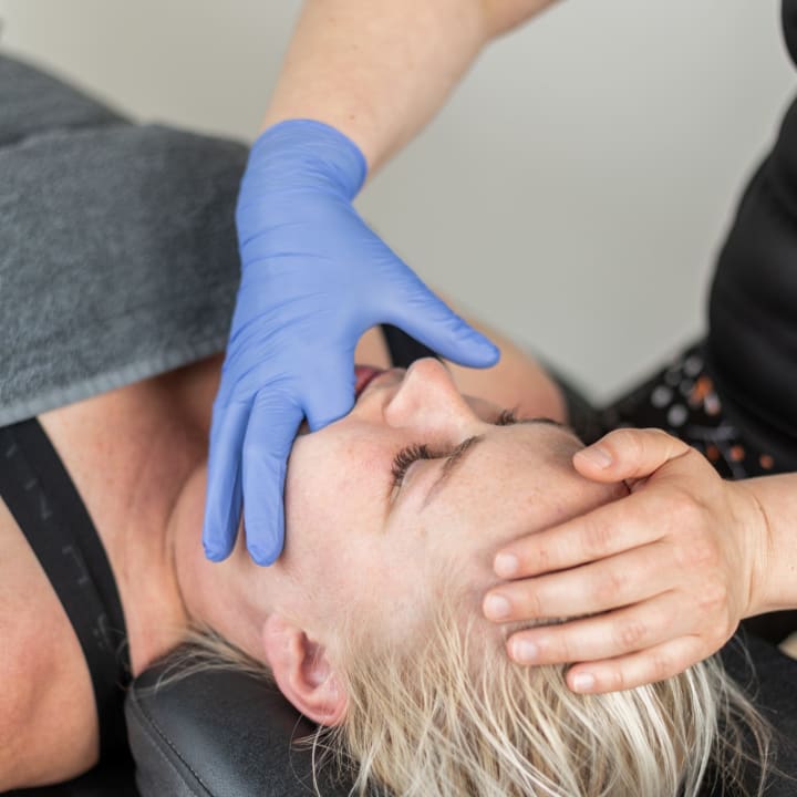 Pään ja ympäröivän alueen lihasten käsittelyä. Tarvittaessa myös suun sisäpinnoilta. Auttaa mm. päänsärkyihin, narskutteluun, tinnitukseen.